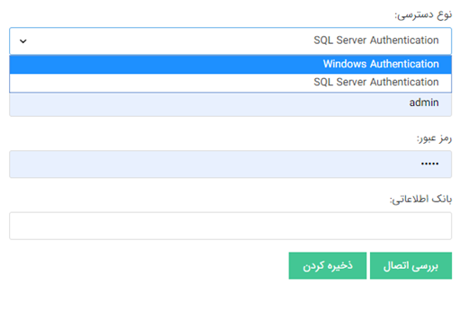 2. SQL Server Authentication : از طریق user و پسورد مشخص دیتا بیس .