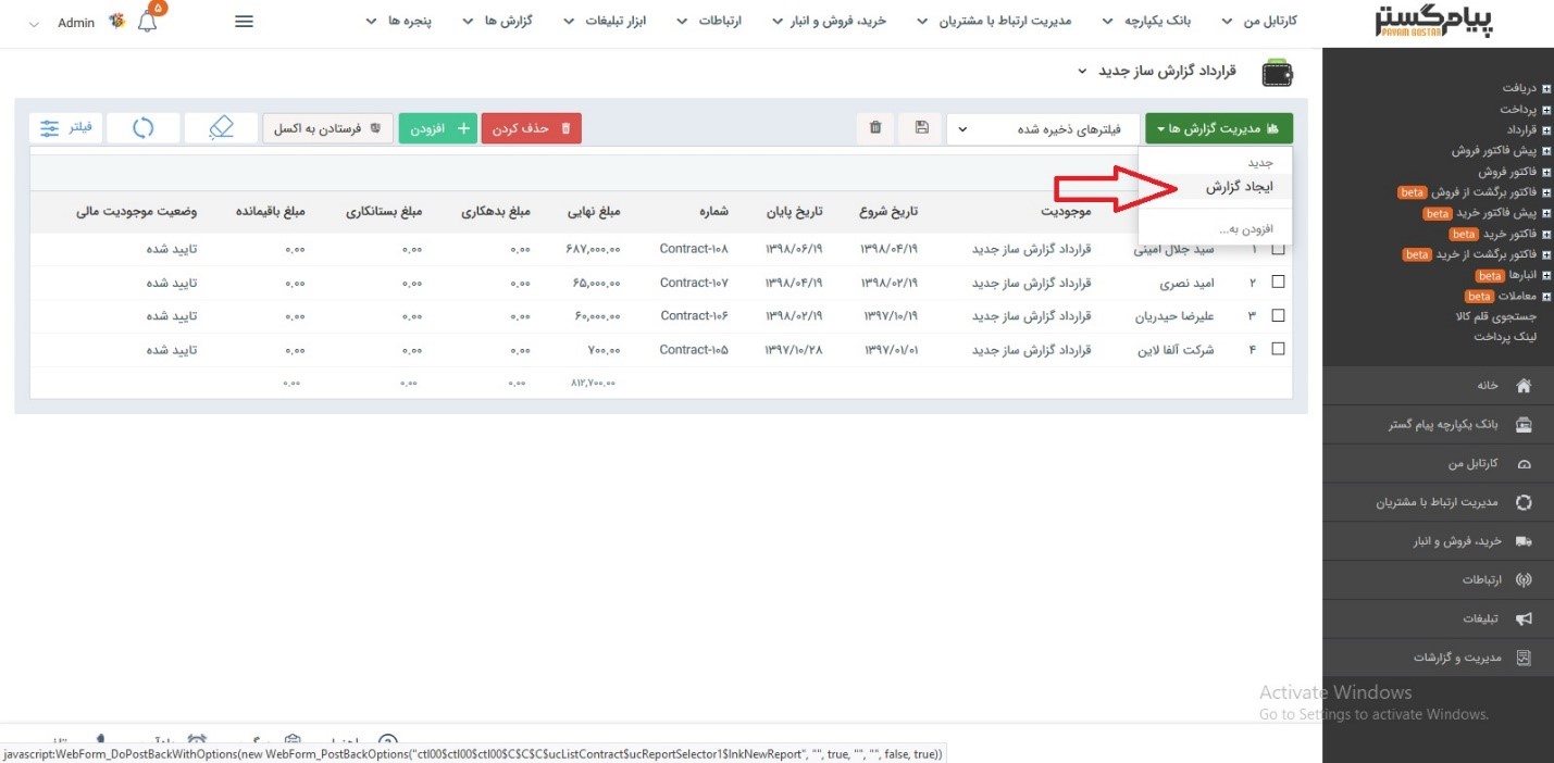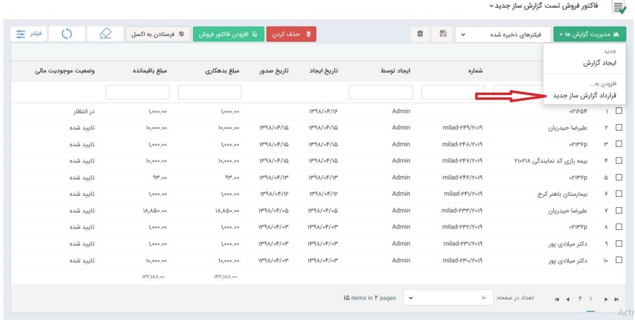 برای این کار در صورتی که گزارشی از قرار داد ها ایجاد کرده