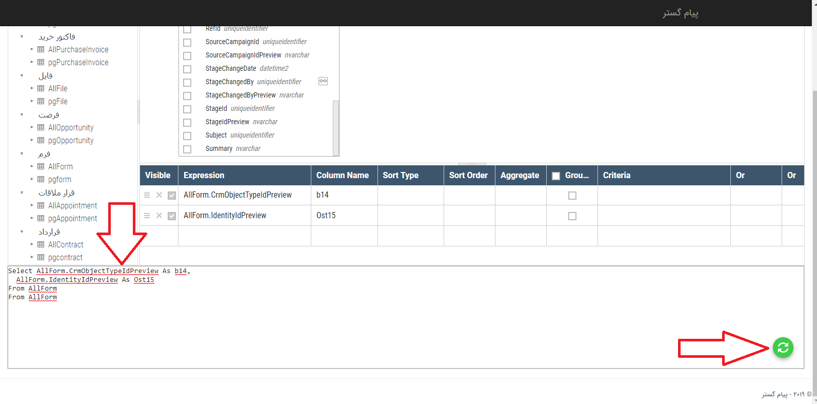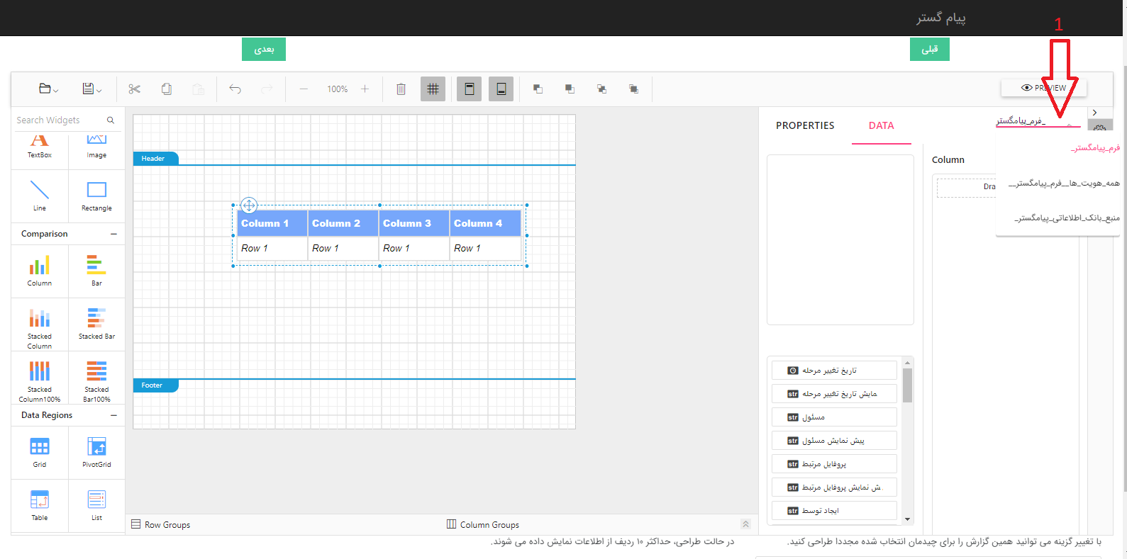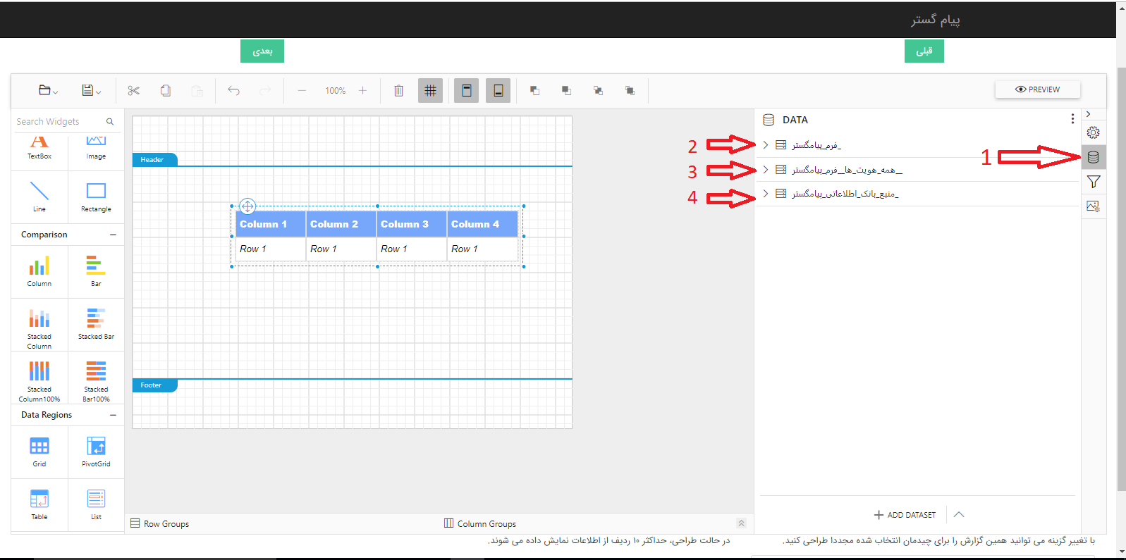 D.ویرایش : با استفاده از این قسمت می توان دیتا سورس انتخاب شده برای گزارش گیری را ویرایش کرد و آیتم دیگری را برای گزارش مورد نظر انتخاب کرد .