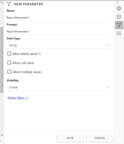 Parameters : با استفاده از کلید new parameter میتوان پارامتر جدیدی را برای فیلتر گزارش و یا مرتب