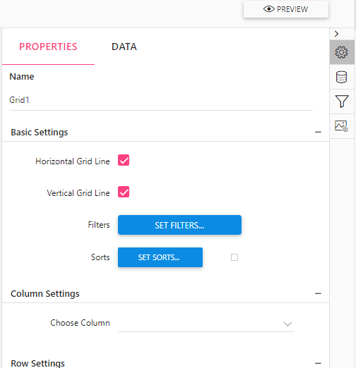 data، از بخش properties میتوان فیلتر و یا نحوه مرتب سازی خود را تعریف کنید.