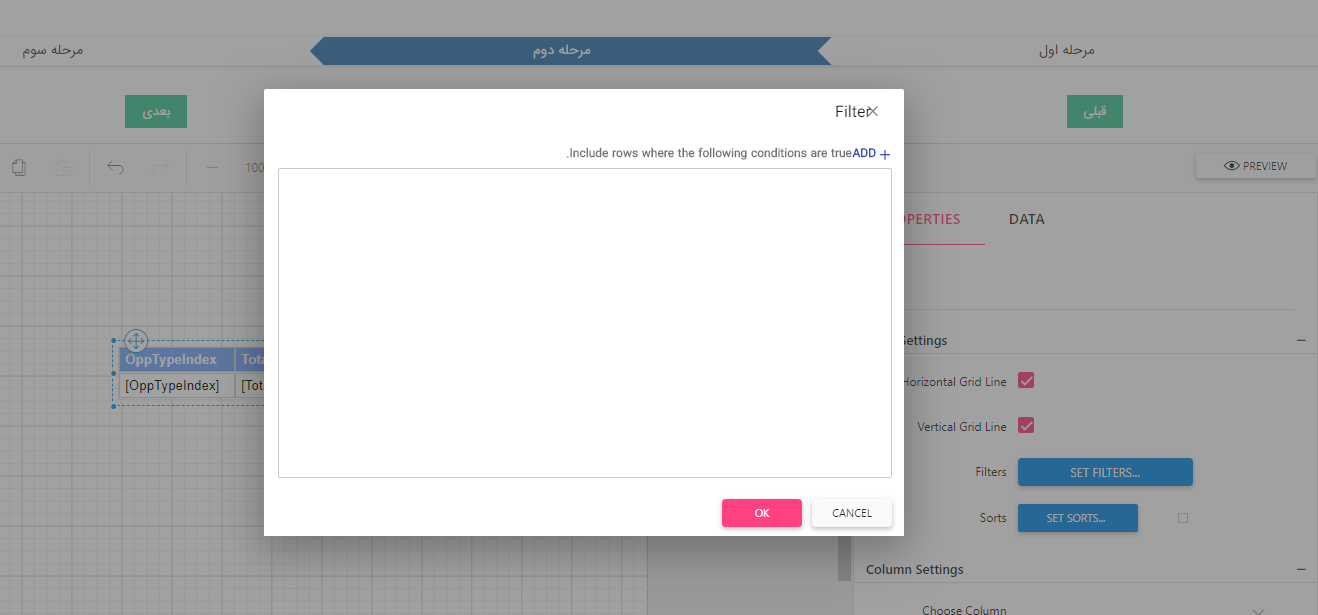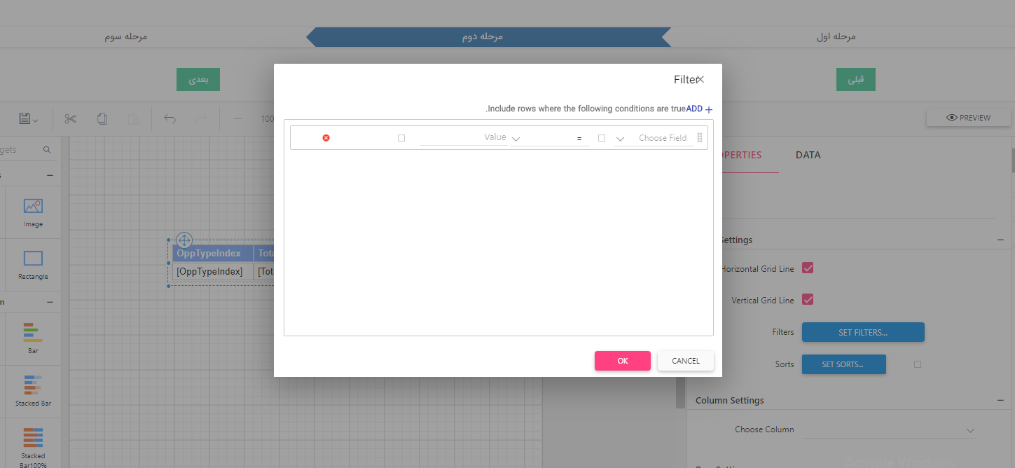 مرحله برای هر فیلد می شود تا سه مرحله فیلتر تعریف کرد، اگر بخواهیم بیش از سه