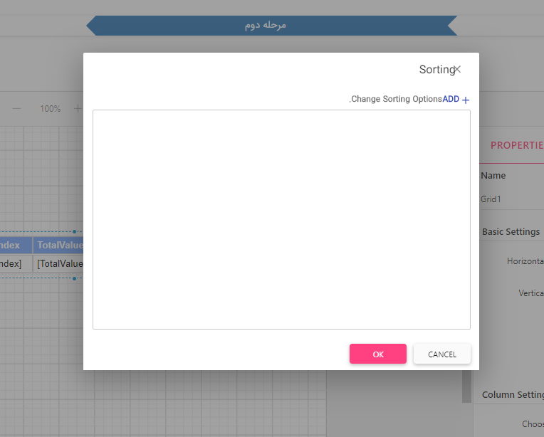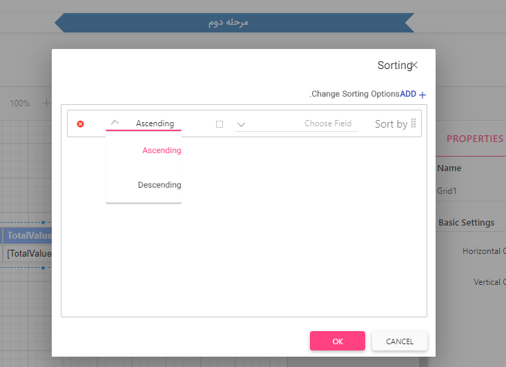 با کلیک بر روی دکمه add میتوانید یک نحوه مرتب سازی جدید تعریف کنید.