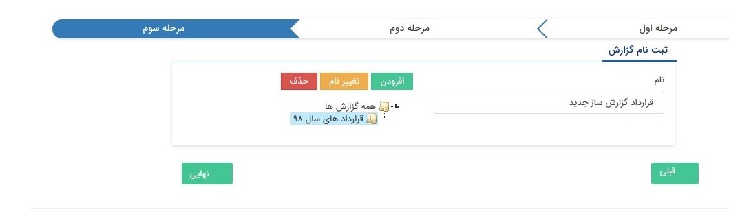 در صورت دارا بودن ماژول گزارش ساز پیشرفته، امکان افزودن این گزارش به