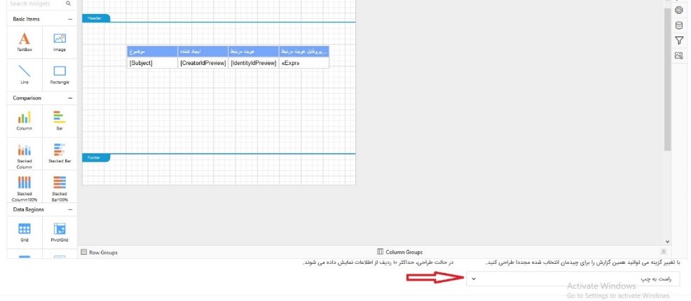 متفاوتی از زبان انگلیسی دارد. برای طراحی گزارش به این صورت می توانید به شرح زیر