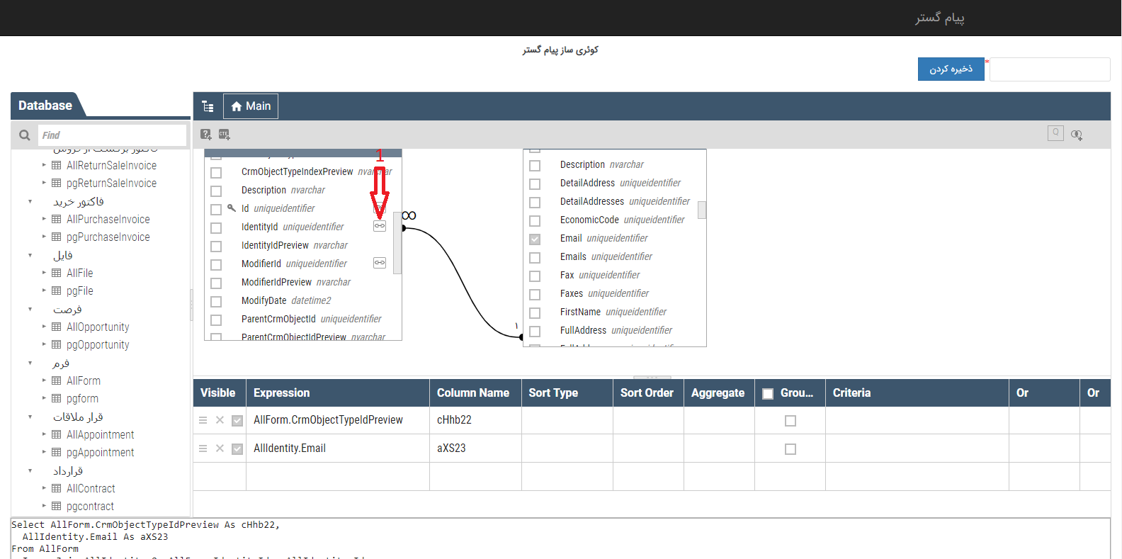 expression : در این قسمت نام فیلد ها نمایش داده میشود و اسم آن موجودیت را به صورت پیشوند به فیلد