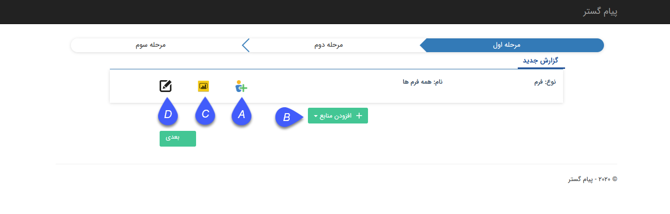 B . افزودن منابع : در صورت دارا بودن ماژول گزارش ساز پیشرفته با استفاده از این کلید، این امکان به کاربر داده شده است که از منابع مختلفی برای تهیه گزارش مورد نظر استفاده کرد که پیش تر در رابطه با این موارد توضیح داده خواهد شد .